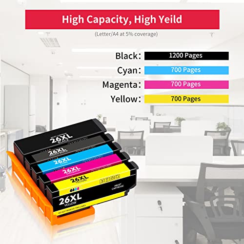 2. Contenuto della confezione: cartuccia 26 26XL 26XL con chip high-tech e inchiostro professionale (1 nero, 1 nero fotografico, 1 ciano, 1 magenta, 1 giallo, 5 pezzi). Confezione eccellente: assicurarsi che la cartuccia di inchiostro sia intatta durante la spedizione.