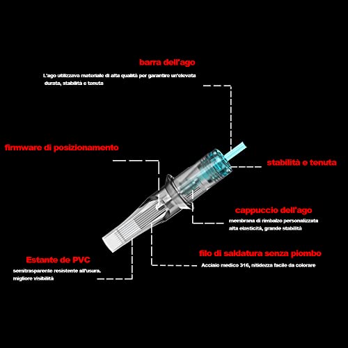 【Design professionale】 Il design di apertura su entrambi i lati del bordo dell'ago può catturare più inchiostro e far scorrere bene l'inchiostro del tatuaggio. La punta è smerigliata per una facile inchiostrazione e assicura che l'inchiostro non scorra facilmente.
