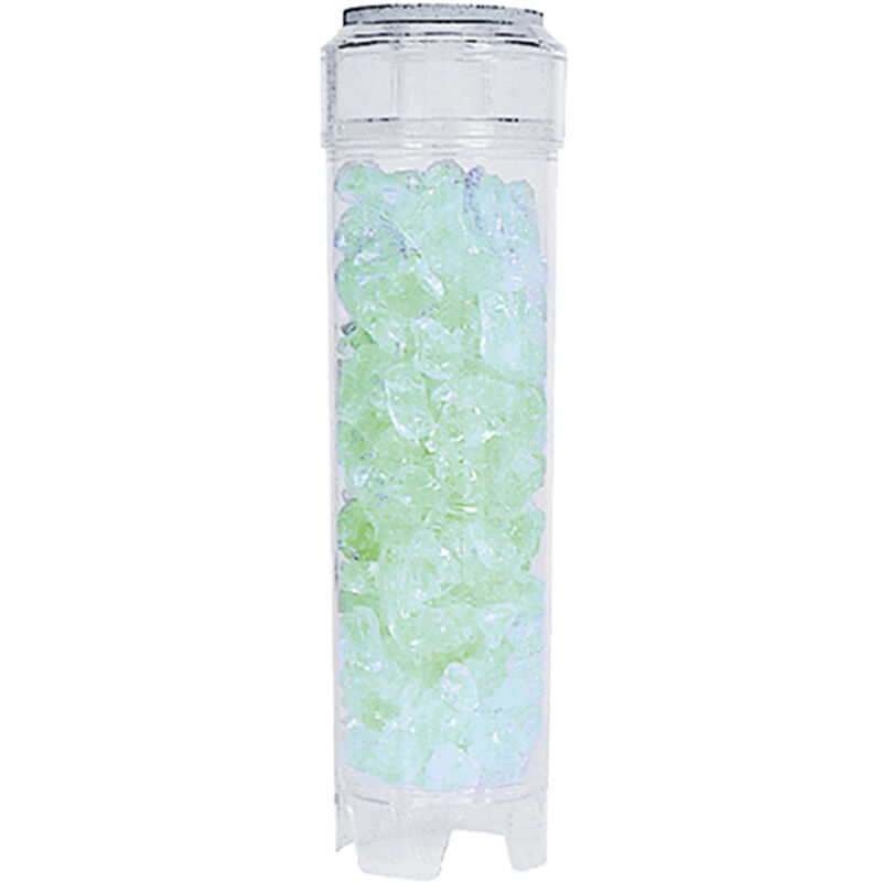 Contenitore in materiale plastico riempito di polifosfato in cristalli. Ideale per mantenere in sospensione il calcare che andrebbe a depositarsi nelle tubature.