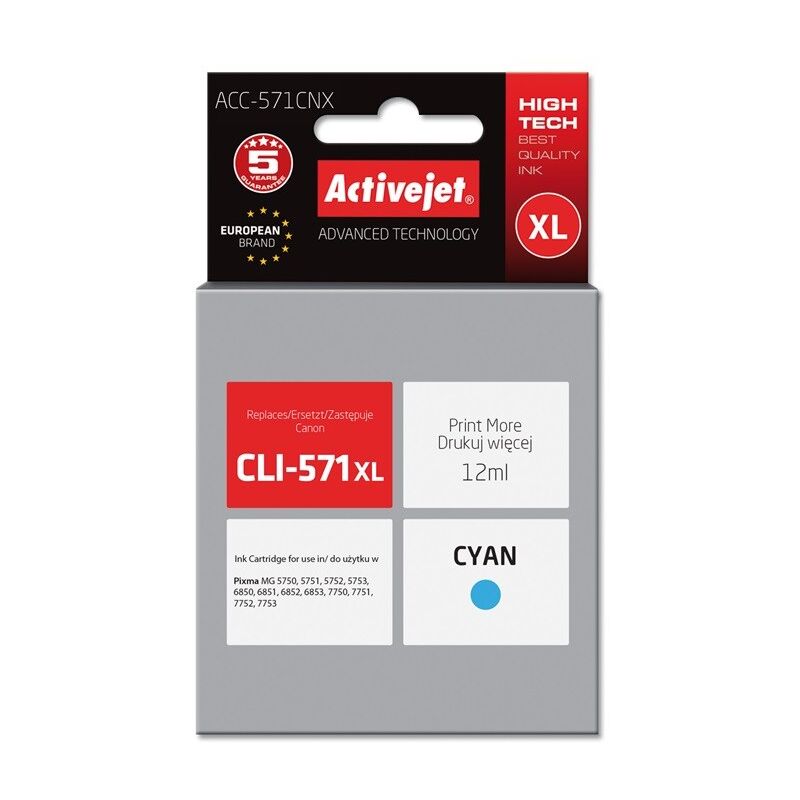Caratteristiche Numero di cartucce d'inchiostro a colori:1 Codice OEM:Canon CLI-571C XL Prodotto descrizione: Cartuccia d'inchiostro Activejet Tipo di consegna: Confezione singola Tipo di inchiostro: Inchiostro a base colorante Quantità per confezione: 1 pezzo(i) Tipo: compatibile Tipo di inchiostro a colori: inchiostro a base di colorante Sostituzione per: Canon Colori di stampa: ciano < li>Tecnologia di stampa:Stampa a getto d'inchiostro li>Compatibilità del marchio: Canon Resa in pagine con inchiostro a colori: 760 pagine Capacità della cartuccia: Alta (XL) resa< /li>< li>Volume inchiostro a colori: 12 ml Altre caratteristiche Classe:A+ Descrizione del prodotto: cartuccia d'inchiostro Activejet Tipi di inchiostro compatibili, Requisiti: CLI-571XL Versione: Supreme Tecnologia: Nuova