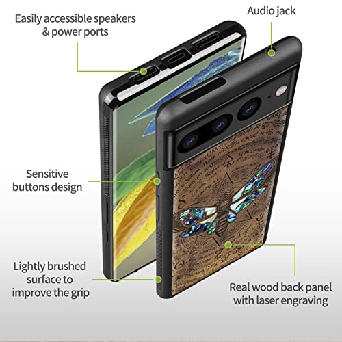 Carveit Cover Compatibile con Google Pixel 7 Pro Custodia [Incisione in legno e intarsio di cozze] Opera unica d'arte Custodia Legno per Pixel 7 Pro Paraurti Robusto TPU (Noce-Headmat della morte)
