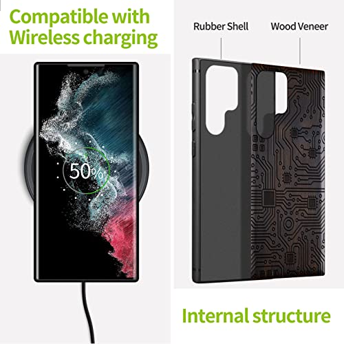 Carveit Custodia Compatibile con Galaxy S22Ultra Cover [Legno nero] Antiurto con Protezione in Legno per Samsung S22 Ultra Paraurti Robusto TPU (Arti di ingegneria)