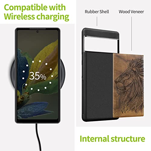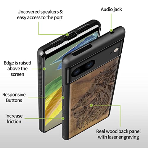 Carveit Custodia Compatibile con Google Pixel 7 Case Legno con TPU Silicone Hybrid Cover per Pixel 7 Custodia Paraurti Robusto TPU (Noce-Modello testa di leone)