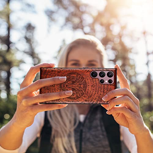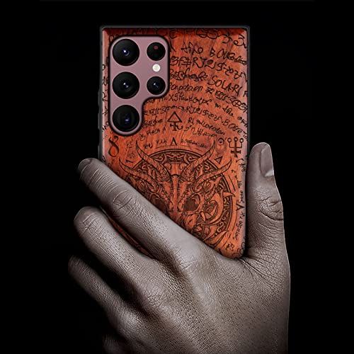 Carveit Custodia per Galaxy S22 Ultra Cover [Retro in Legno e Telaio in TPU] Shock in Silicone Protezione Compatibile con Samsung S22 Ultra Custodia (Palissandro-Dragon Skull)
