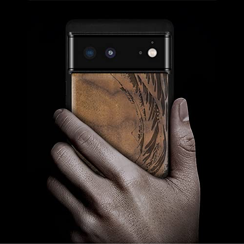 Carveit Custodia in per Google Pixel 6 Cover [Retro in Legno e Telaio in TPU] Slim Fit Anti-Shock in Silicone Protezione Compatibile con Pixel 6 Wood Case (Noce-La grande onda)