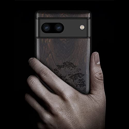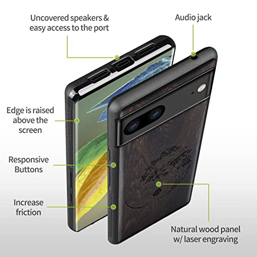 Carveit Custodia per Google Pixel 7a Cover [Retro in Legno e Telaio in TPU] Slim Fit Anti-Shock in Silicone Protezione Compatibile con Pixel 7a Case (Legno nero-Bonsai Tree)