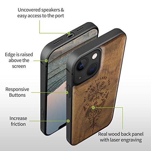 Carveit Custodia per iPhone 13 Cover magnetico [Noce Legno] Ricarica Compatibile con 13 MagSafe Paraurti Robusto TPU(Bussola vichinga)