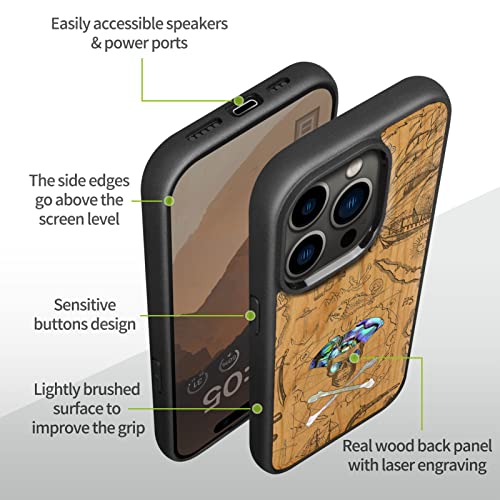 Carveit Custodia per iPhone 14 Pro Max Cover avec magnetico Custodia Legno Unique Incisione in legno e intarsio di cozze Compatibile con 14 Pro Max MagSafe TPU (Ciliegia Legno-Skull pirata)
