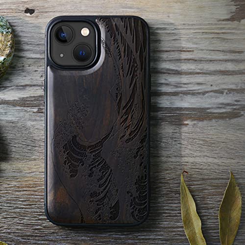 Carveit Custodia per iPhone 13 mini Cover avec magnetico Custodia Legno Unique [Legno nero] Ricarica Compatibile con 13 mini MagSafe Paraurti Robusto TPU (La grande onda al largo di Kanagawa)
