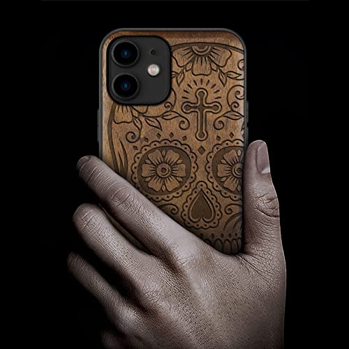 Carveit Custodia in Legno per iPhone 11 Cover [Estetico Noce Legno] [Paraurti Robusto TPU] Cover Antiurto Protezione Compatibile con 11 Cover (Teschio di zucchero)