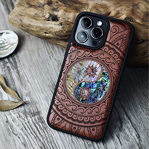 Carveit Custodia in Legno per iPhone 14 PRO Max Cover avec Magnetico Incisione in Legno e intarsio di cozze Compatibile con 14 PRO Max MagSafe Custodia (Rosea Legno-Yin Yang Paisley)