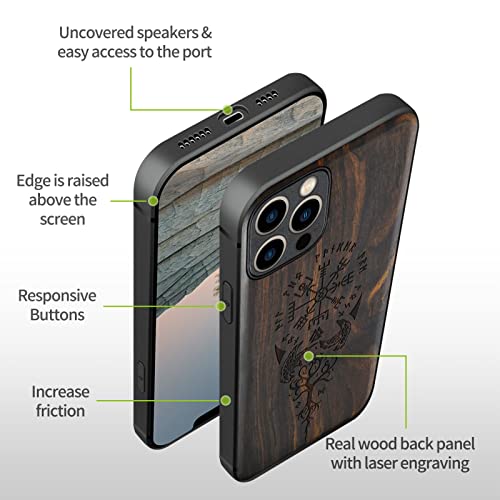 Carveit Custodia in Legno per iPhone 12 Pro Cover magnetico [Legno nero] Ricarica Compatibile con 12 Pro MagSafe Paraurti Robusto TPU(Bussola vichinga)