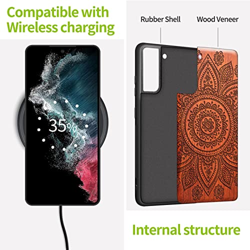 Carveit Custodia in Legno per Samsung S22 Paraurti Robusto TPU [Palissandro Legno] Antiurto con Protezione Compatibile con Galaxy S22 Cover (Splendido mandala)