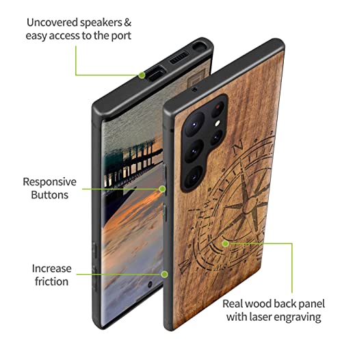 Carveit Custodia per Samsung S22 Ultra Case [Retro in Legno e Telaio in TPU] Slim Fit Anti-Shock in Silicone Protezione Compatibile con Galaxy S22Ultra Case (Noce-Bussola cenciosa)