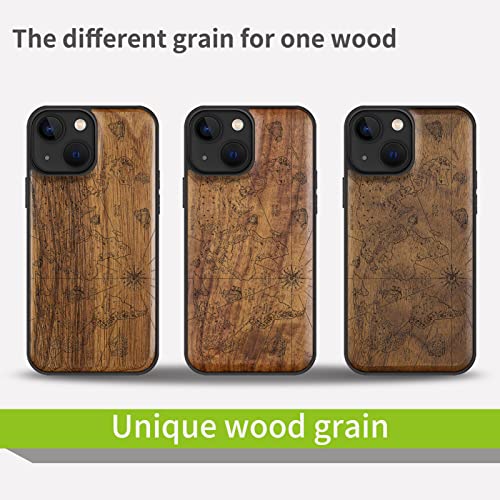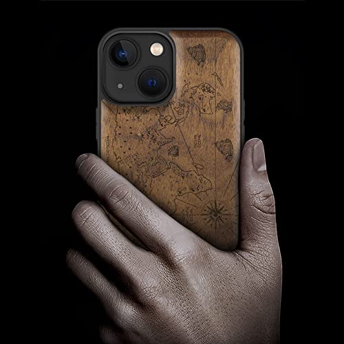 Carveit per iPhone 13 mini Custodia avec Magnetico Cover Legno Unique Ricarica Compatibile con MagSafe 13 mini Paraurti Robusto TPU Case (Noce-Mappa del mondo)