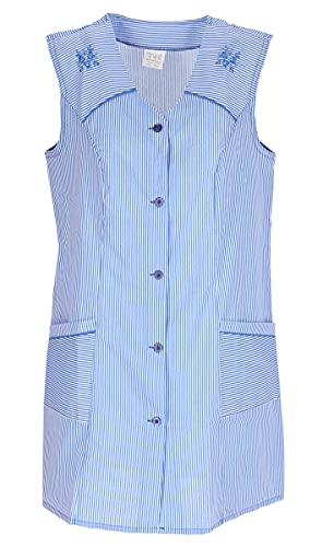 7/8 casacca cotone a righe grembiule corto senza maniche grembiule da cucina grembiule, Blu con ricamo, XL