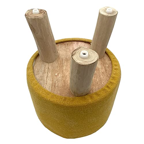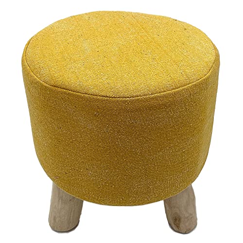Casamia Sgabello 2° scelta Stone Washed Ø 35 cm altezza 45 cm sgabello Pouf con piedini in legno di teak colore giallo/arancione