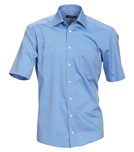 Casa moda Comfort Fit - Camicia da uomo a mezza manica in puro cotone (non si stira), New Kent, tasca sul petto (logo), comodo, tinta unita rosa