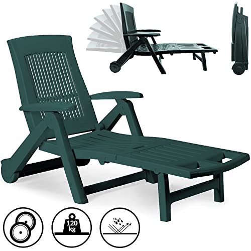 CASARIA Lettino con Ruote Resistente Max 120kg 195x72x101cm Schienale Pieghevole Sdraio Regolabile da Giardino