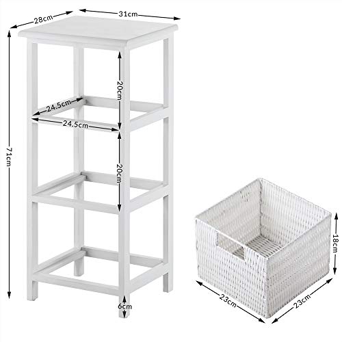 DESIGN RUSTICO: Questo stupendo mobiletto con cestelli della marca CASARIA è fatto di legno di Paulownia laccato ed è perfetto come soluzione salvaspazio in bagno, in camera o in corridoio.