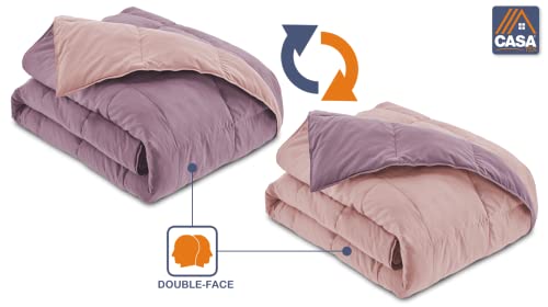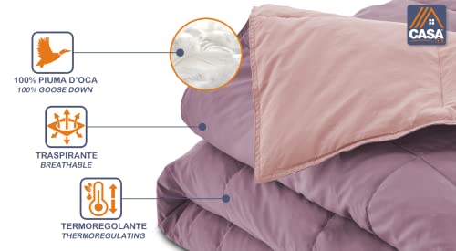 CASATEX | Piumino invernale caldo in 100% Piuma d'Oca - Bicolore Double Face | Matrimoniale 250x200 cm | Colore Malva/Rosa
