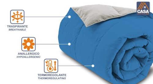CASATEX | Piumino Matrimoniale Autunnale - Trapunta anallergica in Microfibra | Bicolore Bluette/Grigio Perla | 250x200cm