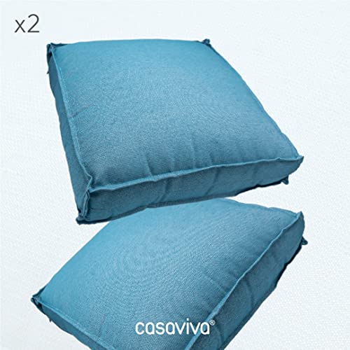 Casaviva ® Set 2 Cuscini Materasso 40 x 40 Maxi Imbottitura 15 cm Sedie Panche per Esterni ed Interni in Misto Cotone Riciclato Made in Italy Idrorepellenti Sfoderabili (Turchese)