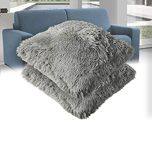 Casaviva Set 2 cuscini pelliccia ecologica completi extra imbottitura maxi formato cm 50x50 cuscini pelosi eleganti e moderni per divano e decorazione in caldissimo PV fleece di alta qualità (Grigio)