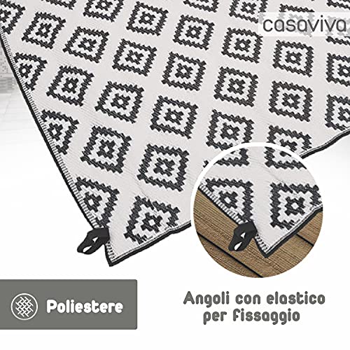 Casaviva Tappeto per Esterni ed Interni cm 120 x 180 in polipropilene effetto Stuoia Moderno ed Elegante antiscivolo (nero - beige)