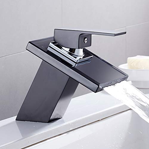 Cascata Bacino Lavello Miscelatore Cromato Moderno Bagno Leva Rubinetto Vetro Beccuccio Singola Maniglia Lavabo Miscelatore Rubinetti Nero