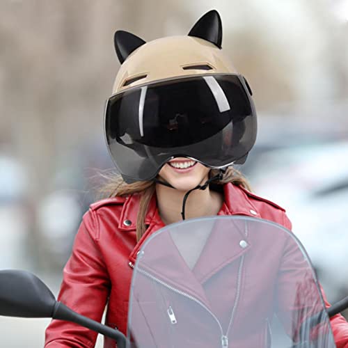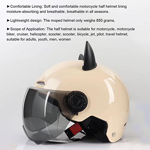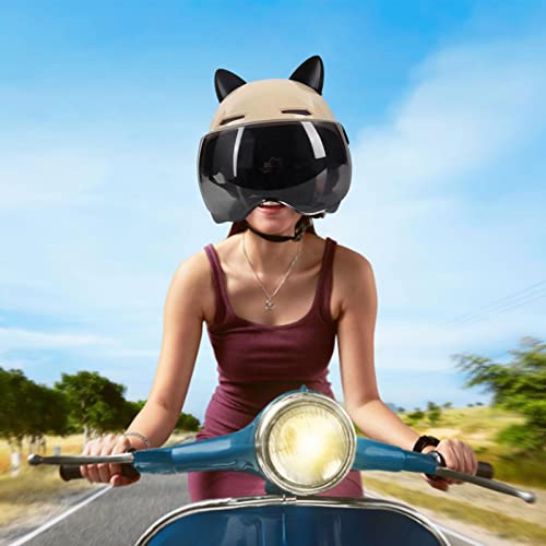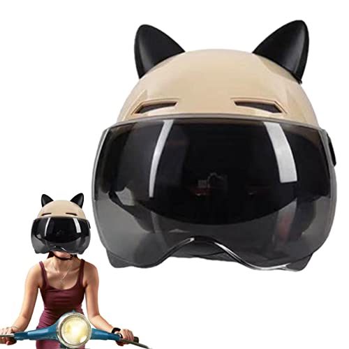 Caschi Moto a Faccia Aperta, Mezzo Casco Moto Visiera a Discesa, Casco Moto Orecchie di Gatto, Casco Moto Berretto, per Uomo Donna Casco Moto Touring, Orecchie di Gatto, Crema
