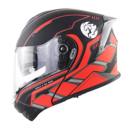 Caschi Modulari Apribili Per Moto Con Doppia Visiera, Casco Moto Modulare Apribile Omologato DOT/ECE Casco Integrale Modulare Per Moto Per Uomo Donna Adulti, Grande Grandangolo Black Red 1,2XL