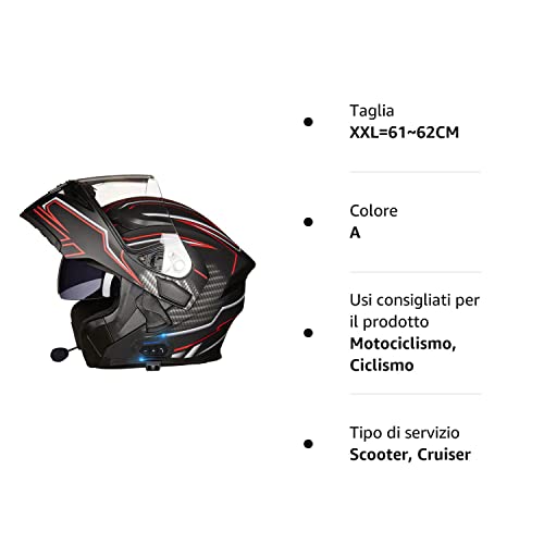 Caschi Modulari Apribili Dual Visor Anti-Fog,Casco Moto Modulare Bluetooth Integrato per Uomini e Donne,Casco Modulare Moto con Altoparlante Incorporato,Certificazione ECE A,XXL=61~62CM