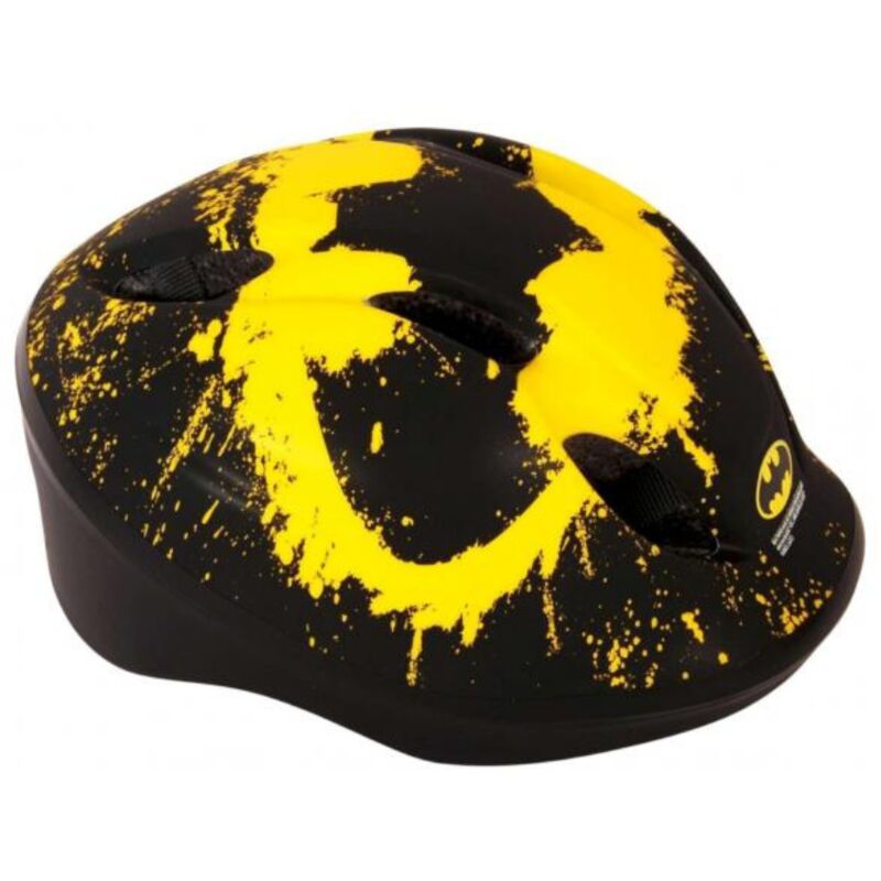 Bellissimo casco bici Batman. I favolosi colori nero, giallo e le decorazioni di Batman danno al casco un look perfetto. Il quadrante della circonferenza del casco è regolabile da 51 a 55 cm. Anche la parte sotto del casco è ricoperta. Il peso del casco è di 240 grammi. Questo lo rende super leggero e facile da indossare. Il casco rispetta i più stringenti requisiti TÜV/GS. Caschetto bici Batman misura regolabile ruotando la manopola circolazione dell'aria attraverso le aperture di ventilazione dimensione adattabile dai 51 ai 55 cm chiusura a scatto con sottogola regolabile calotta esterna plastica calotta interna EPS consigliato per bambini a partire dai 3 anni