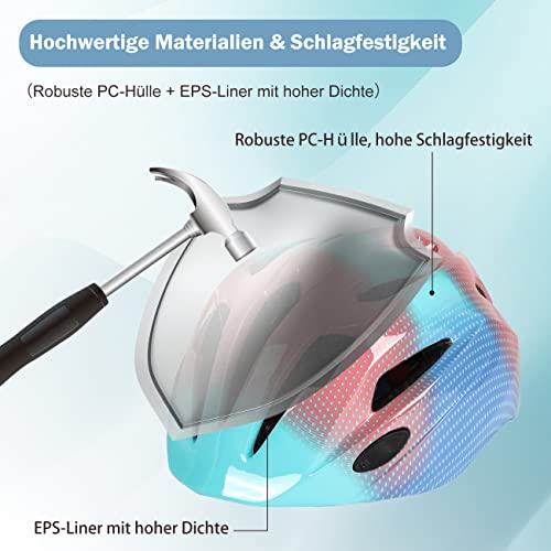 Casco da bicicletta per bambini, robusto, regolabile, 52-56 cm, per ragazze e ragazzi (Blu e Rosa)