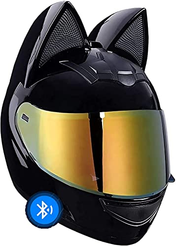 Casco Moto Cat Ears Bluetooth Cat Ears Uomo Donna Cool Cute Casco Integrale Moto Certificato ECE Street Racing Visiera Ribaltabile Casco Motocross Con Visiera C,M=54-56CM