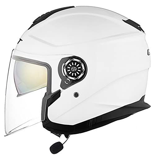 ZLYJ Casco Moto Jet Bluetooth 3/4, Doppia Visiera Caschi Aperti Microfono Auricolare con Altoparlante Integrato per Risposta Automatica Certificazione ECE K,L(57-58cm)