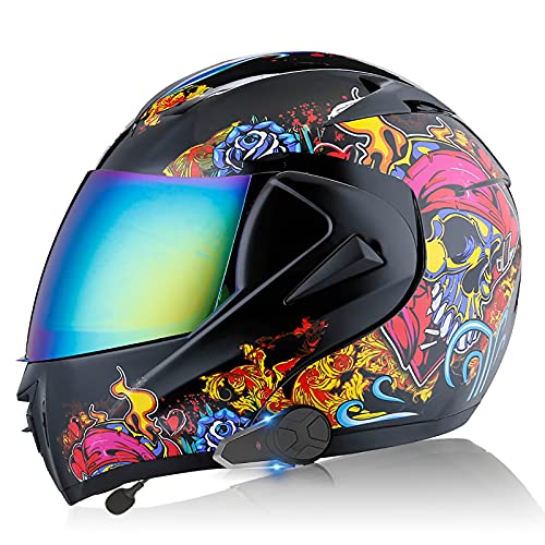 Casco moto Bluetooth Flip Up Front, casco integrale modulare con doppia visiera parasole, interfono ECE / DOT Racing Crash Helmets Built-In Mp3 FM O,XS=53-54CM