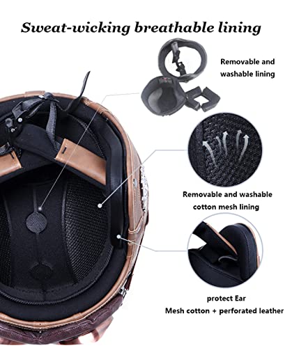 MEZZI CASCHI RETRO: I caschi da moto a mezzo casco in stile retrò sono dotati di una fodera interna spessa, completamente ventilata e ad alta densità in EPS che assorbe notevolmente gli impatti e ti mantiene in sella alla tua bici in sicurezza.