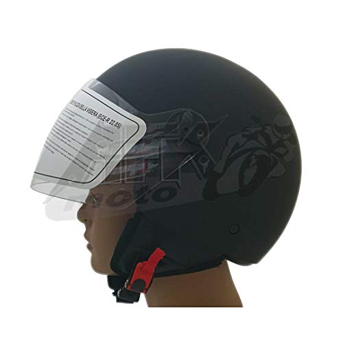 Casco Caschi Jet Eko Motocubo Basic Nero Opaco Visiera Lunga per Moto e Scooter taglia L + in Omaggio Sottocasco Calotta Falappa Nero Motocubo