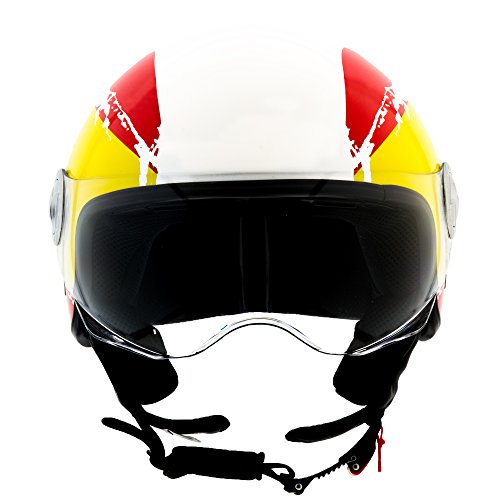 Casco Moto Jet Custom Scooter Omologato ECE R22-05 Visiera Sole Sferica Antigraffio (Bandiera Spagna, M)