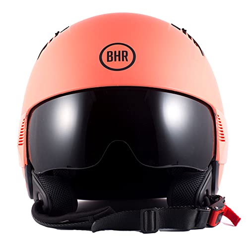 BHR Casco Demi-Jet 815 COMBY | Pratico Casco Scooter Omologato ECE | Casco Moto Jet con Plastiche Laterali Personalizzabili, Visiera Parasole & Sgancio Micrometrico | Corallo Opaco | S