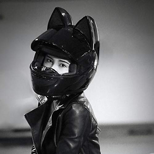 ZHEN Casco Moto Donna con Orecchie Gatto, Casco Integrale Personalizzato Moto Strada Casco Gatto con Orecchie Accessori Casco Orecchie Gatto, Casco Locomotive Omologato ECE