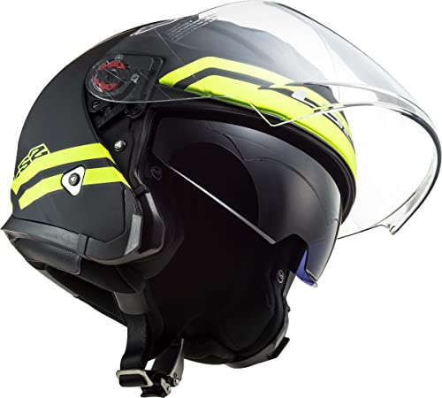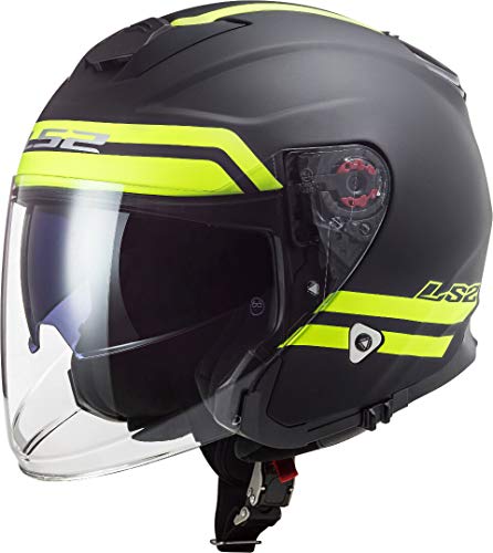 LS2, Casco jet da moto Infinity hyper black yellow, L