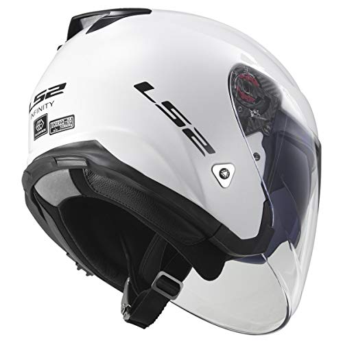 LS2 presenta il suo casco jet OF521 - INFINITY: Sicurezza: In fibre tri-composite HPFC riconosciute per la sua resistenza e leggerezza per un peso di 1250g +/- 50 EPS multi-densità per un assorbimento degli urti ottimizzato Chiusura del sottogola veloce ed efficiente