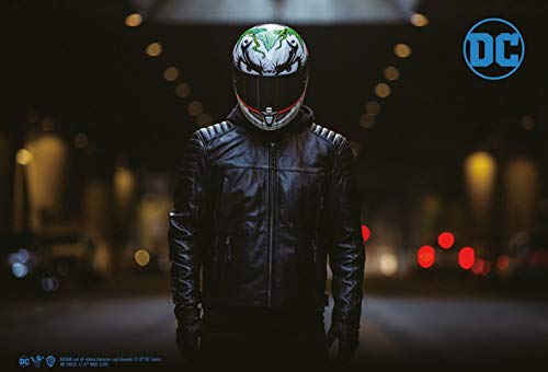 HJC ti offre il suo casco moto integrale RPHA 11 - JOKER - DC COMICS: Sicurezza: In fibra tri-composita PIM (Premium Integrated Matrix) che contribuisce a migliorare la resistenza e la leggerezza del casco per un peso di 1300g +/- 50 La fibbia a doppia D più sicura sul mercato Sistema di smontaggio rapido per guanciali in caso di emergenza