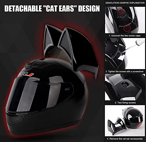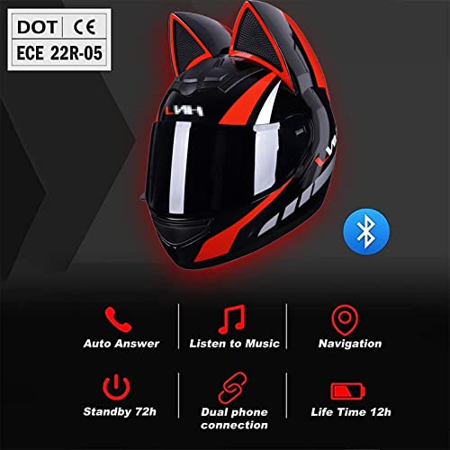 Casco Integrale Bluetooth Per Moto Da Donna Con Orecchie Di Gatto Carino Ragazza, Caschi Flip-Up Approvati ECE Casco Modulare Crash Per Moto Design Leggero Z,M(50-53 cm)
