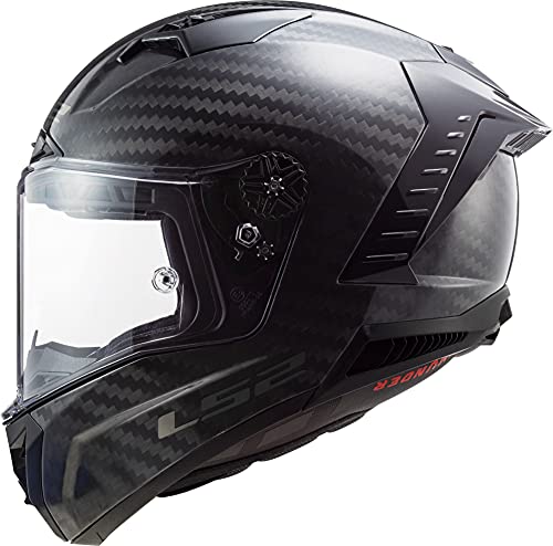 LS2 ti propone il suo casco integrale FF805 THUNDER CARBON - SOLID: Sicurezza: In 6K di Carbonio e Fibre Aramidiche riconosciute per la loro elevata resistenza agli urti e leggerezza per un peso di 1400g +/- 50 EPS multi-densità per un assorbimento degli urti ottimizzato Sistema di rilascio di emergenza ERS per guanciali da parte del personale medico La chiusura con fibbia Double-D più sicura sul mercato e l'unica approvata in competizione Piastra di sicurezza in metallo che rinforza la giunzione tra la mentoniera e il casco