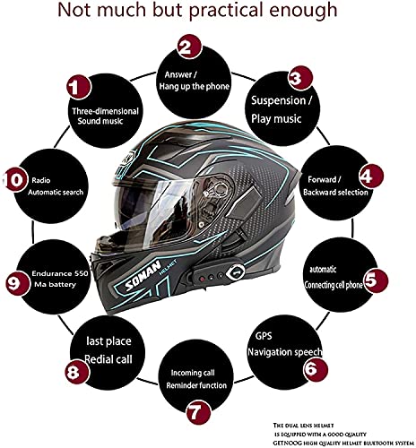 ★Sistema Bluetooth integrato con funzione Bluetooth, compatibile con una potente qualità del suono stereo, risponde automaticamente, ascolta le canzoni, goditi il piacere di guida, quando usi un casco Bluetooth multifunzionale per ascoltare la musica. Puoi anche rispondere automaticamente alle chiamate e guidare in sicurezza.