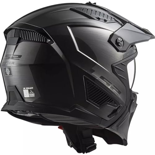 LS2 presenta il suo casco modulare Crossover DRIFTER: Calotta KPA: miscela brevettata di policarbonato, compositi termoplastici che offre elevata resistenza alla penetrazione e leggerezza per un peso pubblicizzato di 1350 ± 50 g EPS multi densità per un assorbimento degli urti ottimizzato Chiusura con fibbia micrometrica rapida ed efficiente